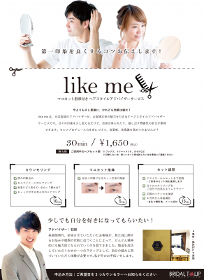 結婚相談サービスBridalチューリップを運営する株式会社ナウいは、2019年12月26日からお客様自身の魅力を引き出すヘアスタイルアドバイザーサービス「like me(ライクミー)」の提供を開始しました。 -