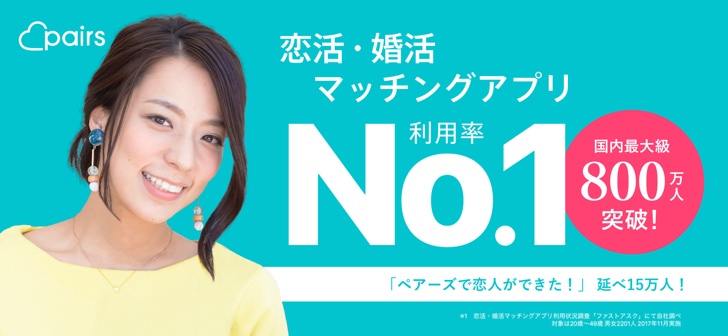 Pairs(ペアーズ)累計会員数700万人突破、交際中カップルを使った広告の配信を開始