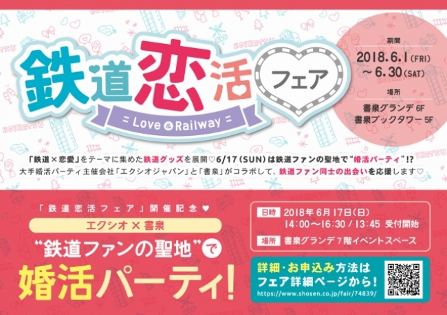 鉄道恋活フェアの開催を記念し、6月17日(日)に書泉グランデ7Fイベントスペースにて鉄道ファンの方を対象にした婚活パーティが開催されます。 -